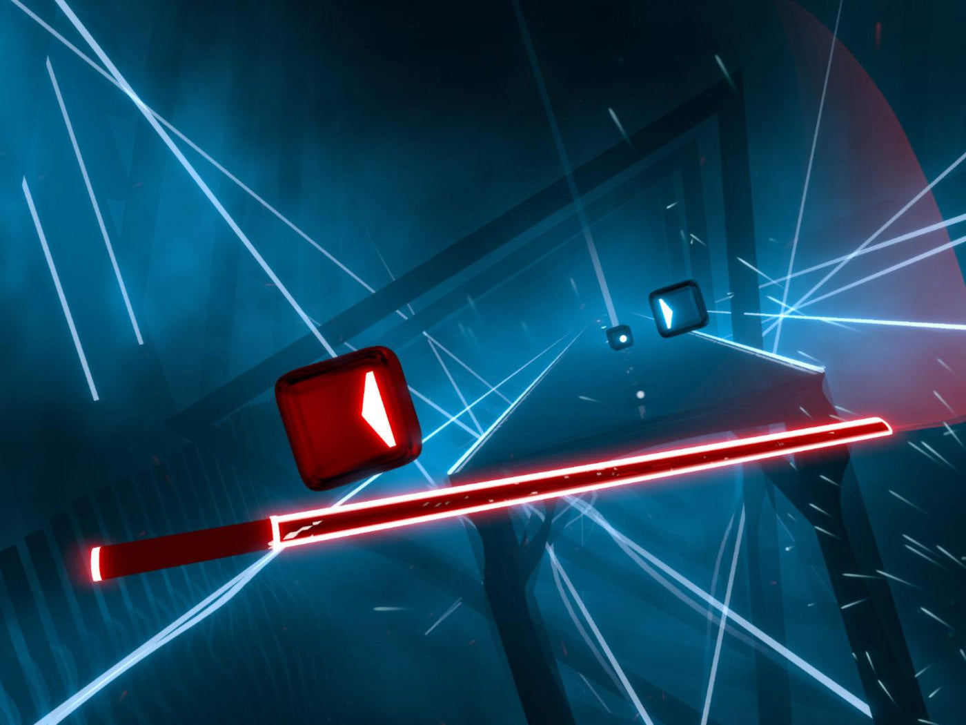 Beat Saber: A rhythm-based VR game where players slash blocks synchronized to music. Enjoy fast-paced action with catchy tunes, a variety of songs, unlockable sabers, customizable avatars, and multiplayer modes.